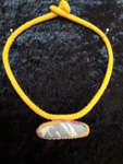 2019Een ketting met een gevilte medaillon met rood en geel aan een leren koordje en die je eenvoudig op de gewenste lengte kan maken.